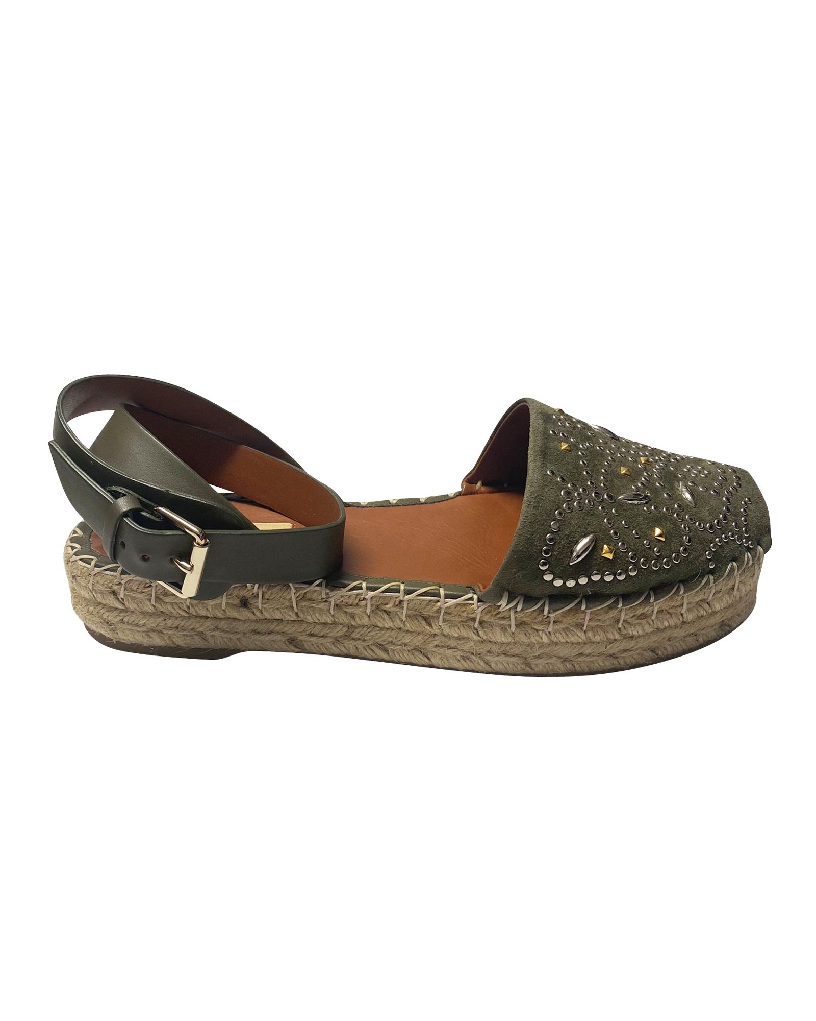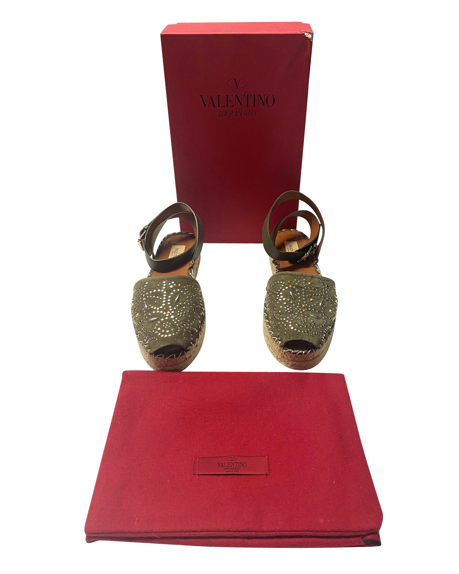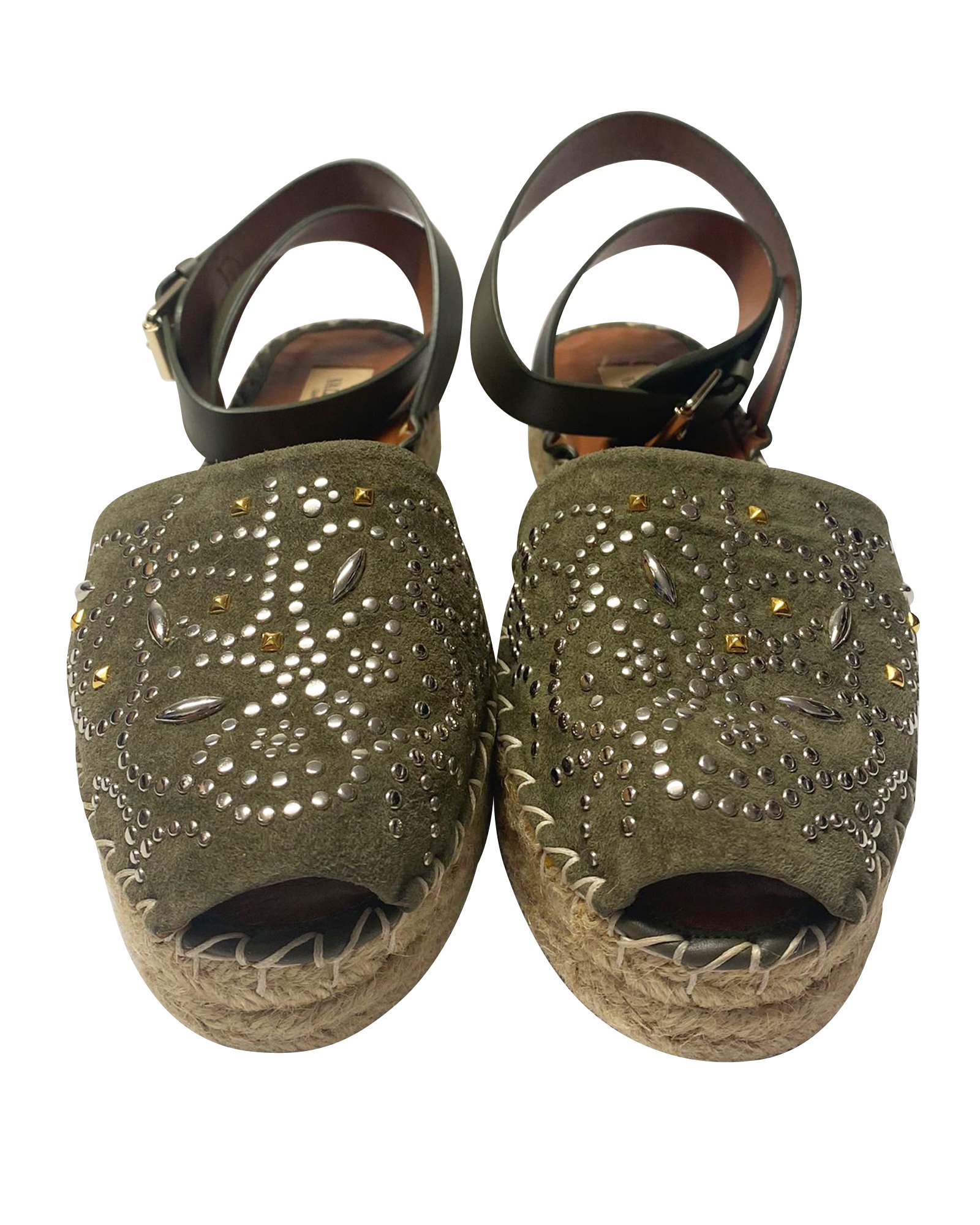 Valentino Khaki suede studded flatform espadrille sandals Size 40